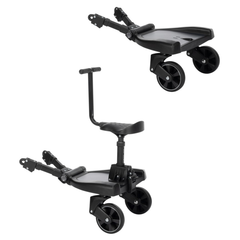 Zamislite osmijeh vašeg djeteta dok staje na Hop-On Board i postaje vaš mali suvozač. S prilagodljivim sjedalom koje pruža opciju za stajanje ili sjedenje, vaše dijete može birati što mu najviše odgovara u svakom trenutku. Uz dodatnu opremu koja uključuje zaštitu od klizanja i jednostavno održavanje, sigurnost i praktičnost su zajamčeni.
