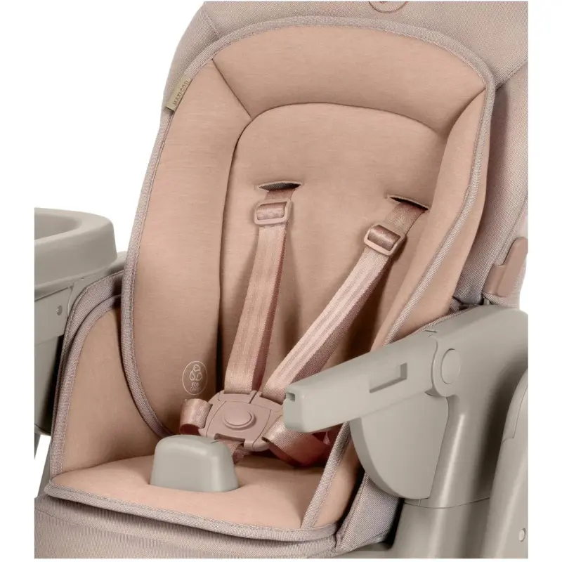 Pomični pladanj možete okretati jednom rukom, a sigurnosni pojasevi s praktičnim kopčama olakšavaju postavljanje djeteta.