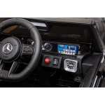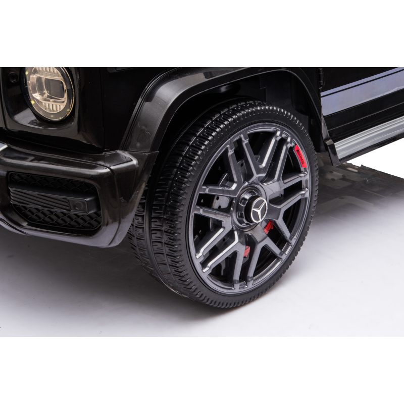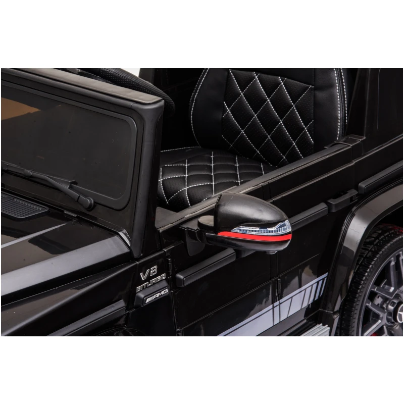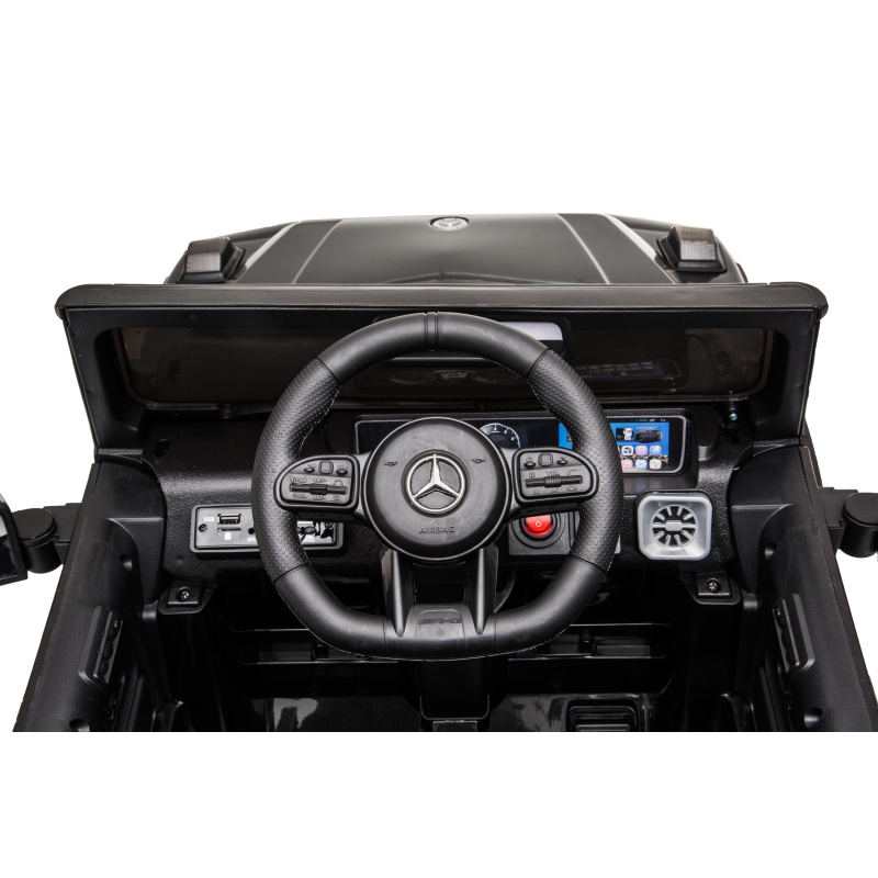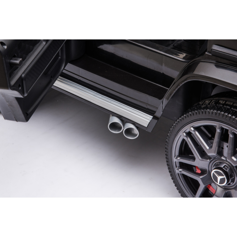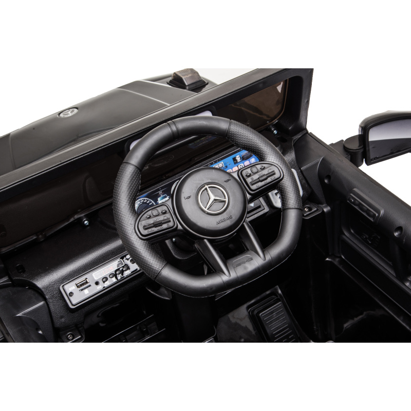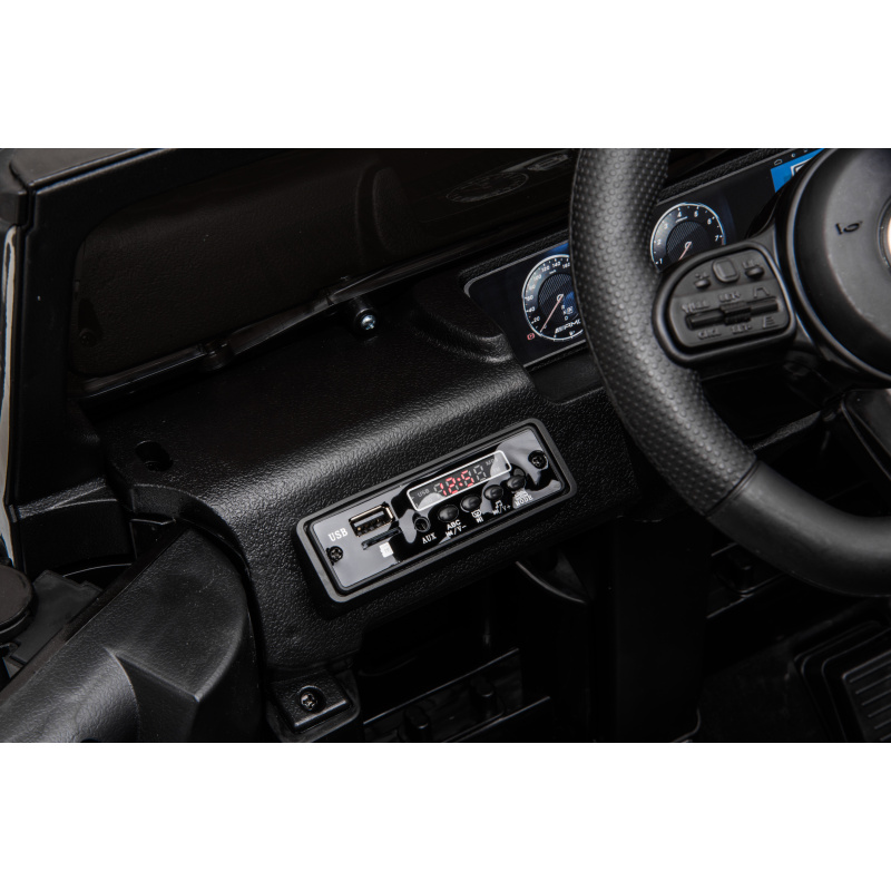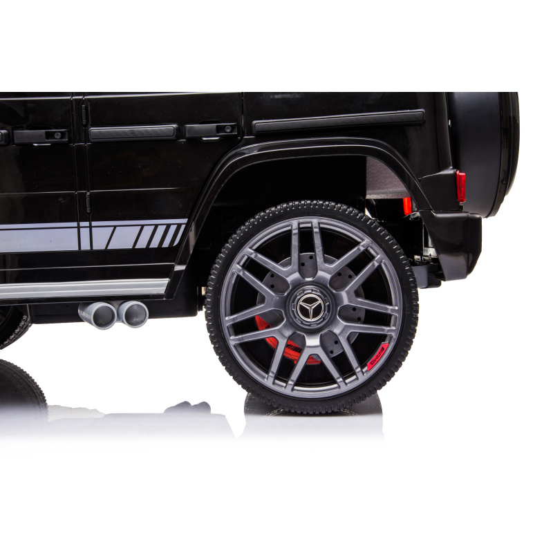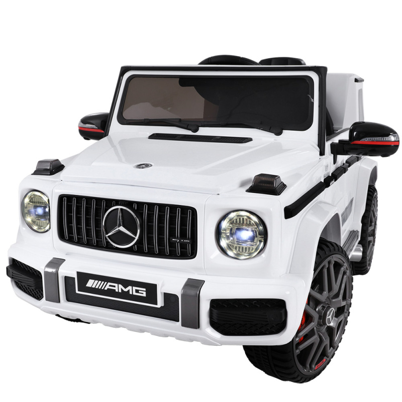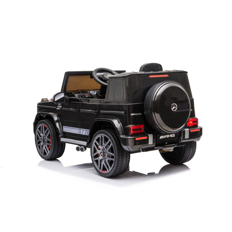 Automobil na akumulator Mercedes AMG G63 s dva motora 12V ukupne snage 70 W omogućit će vam da aktivno i zanimljivo provodite vrijeme sa svojim djetetom. Dizajniran za djecu s maksimalnom težinom od 25 kg. Zahvaljujući Mercedesovoj dozvoli, automobil izgleda kao manji original. Najvažnije funkcije uključuju: amortizirane stražnje kotače, opciju daljinskog upravljanja za roditelje, LED svjetla: prednja i stražnja, osvijetljenu multimedijsku ploču, vrata auta se otvaraju, bez trzaja polazak, MP3, USB, TF.