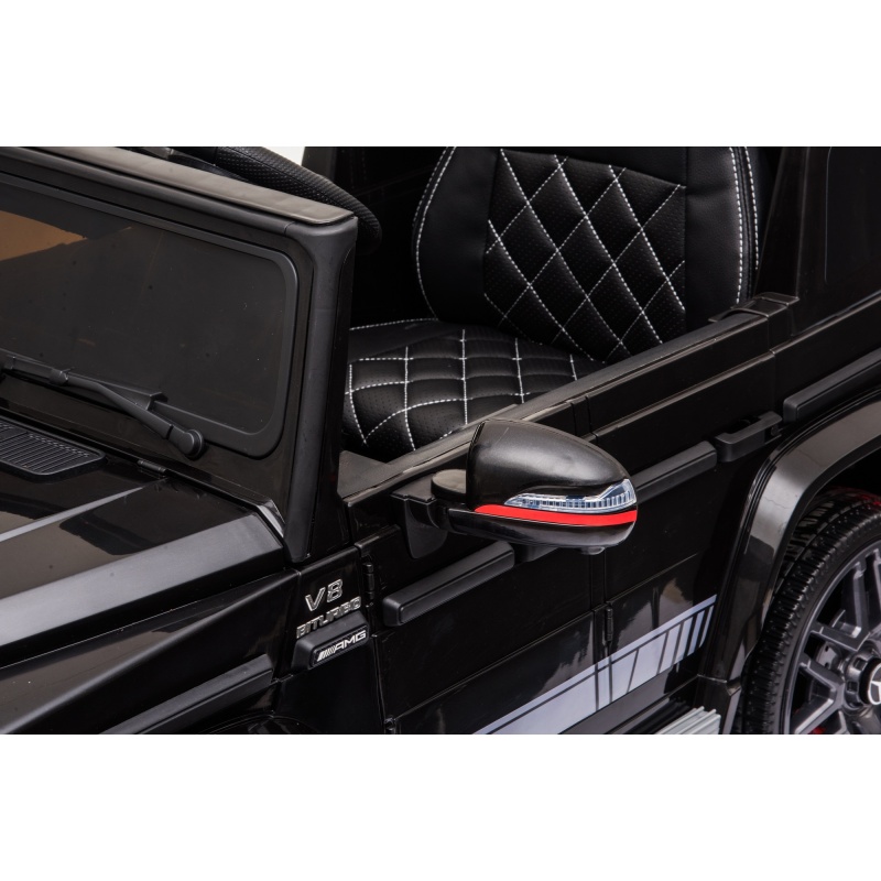Automobil na akumulator Mercedes AMG G63 s dva motora 12V ukupne snage 70 W omogućit će vam da aktivno i zanimljivo provodite vrijeme sa svojim djetetom. Dizajniran je za djecu s maksimalnom težinom od 25 kg. Zahvaljujući Mercedesovoj dozvoli, automobil izgleda kao manji original. Najvažnije funkcije uključuju: amortizirane stražnje kotače, opciju daljinskog upravljanja za roditelje, LED svjetla (prednja i stražnja), osvijetljenu multimedijsku ploču, vrata automobila se otvaraju, polazak bez trzaja, MP3, USB, TF.