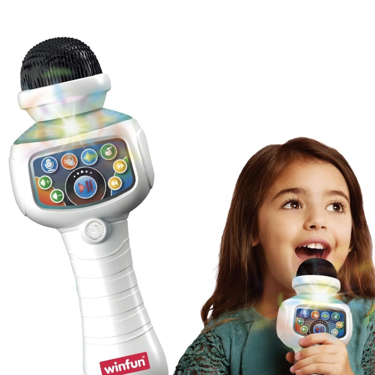 Zamislite kako ćete razveseliti najmlađe članove obitelji ovim mikrofonom, koji je siguran i pogodan za djecu od 24 mjeseca naviše. Njegove kontrole za podešavanje glasnoće i reprodukciju glazbe, uključujući gumbe za reprodukciju, pauzu, kao i sljedeću i prethodnu pjesmu, čine ga intuitivnim i jednostavnim za upotrebu. Ovo je savršen alat za poticanje njihove kreativnosti i samopouzdanja, dok se istovremeno zabavljaju.