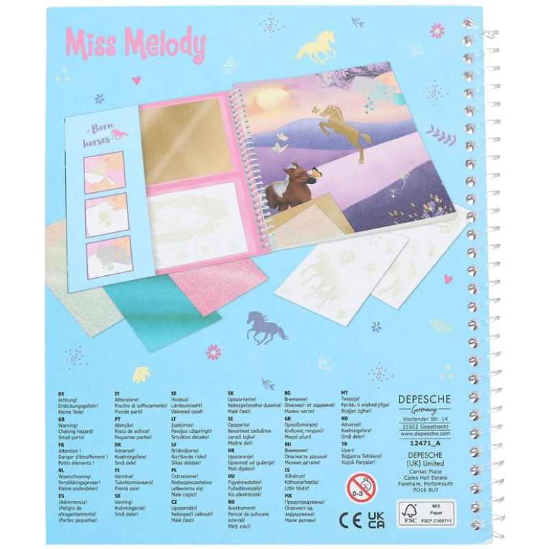 Stick & Shine Miss Melody bojanka je savršena kombinacija zabave, kreativnosti i sjaja! Idealna je za sve one koji vole bojanje i naljepnice. Ova bojanka će vas oduševiti sa 12 fantastičnih predložaka za bojanje bojama. Svaka stranica je prepuna sjajnih motiva konja i predivnih šarenih boja koje će probuditi vašu maštu.