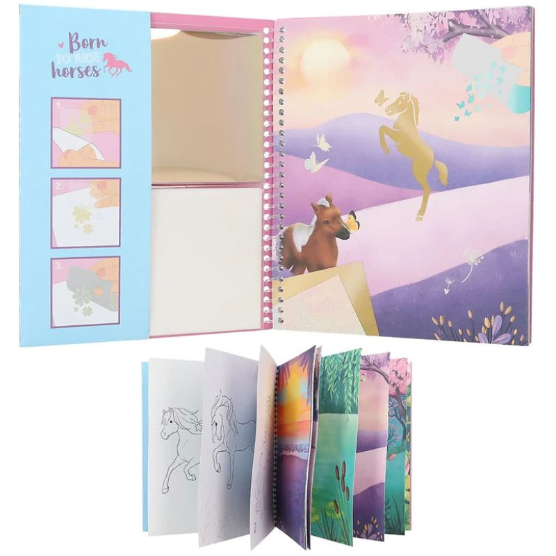Ova bojanka dolazi s 8 različitih listova naljepnica za tetoviranje koje će vam omogućiti da dodate posebne naglaske na svoje crteže. Svoju ljubav prema konjima možete izraziti na kreativan i jedinstven način koristeći ove prekrasne naljepnice.
