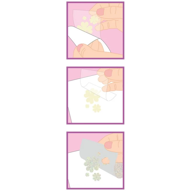 Ako volite blistave detalje, Stick & Shine Miss Melody bojanka ima i 8 različitih svjetlucavih folija. Jednostavno ih nanesite na odabrane dijelove crteža i vidjet ćete kako vaša umjetnička djela oživljavaju sjajem.