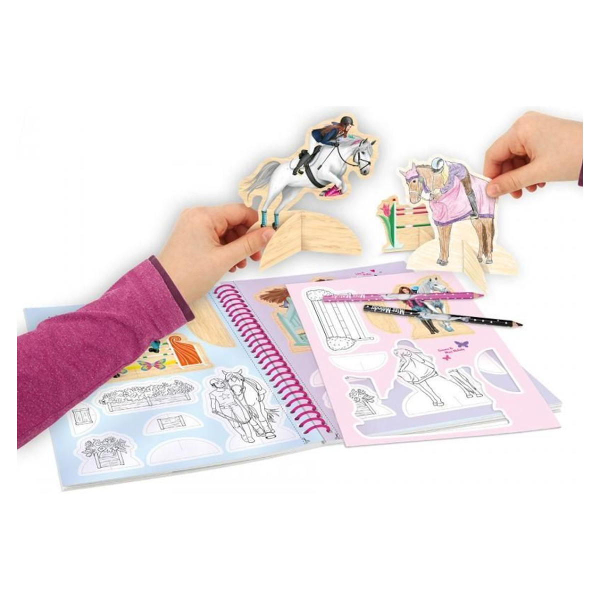 Jedinstvena kombinacija bojanke i kreativnog seta pruža sate zabave i potiče djecu na razvijanje mašte, fine motorike i ljubavi prema životinjama. Dodaci koji se lako odlažu ili mijenjaju omogućuju da svaka igra bude drukčija, a svaki konj dobije svoje posebno mjesto na stazi. Sve je osmišljeno kako bi djeca mogla izgraditi vlastiti svijet izvan stranica knjige.