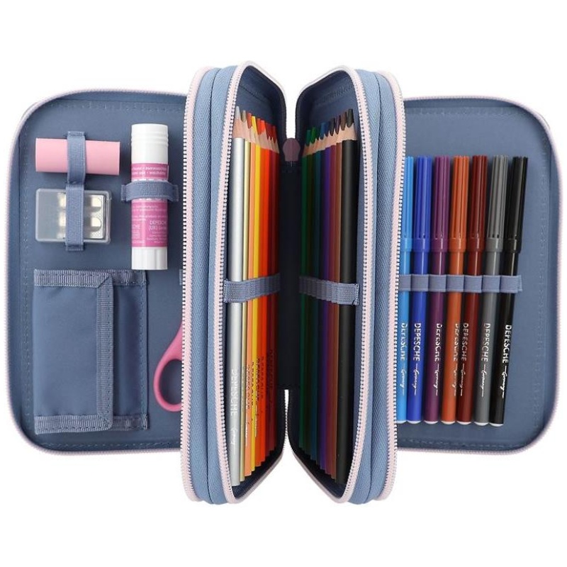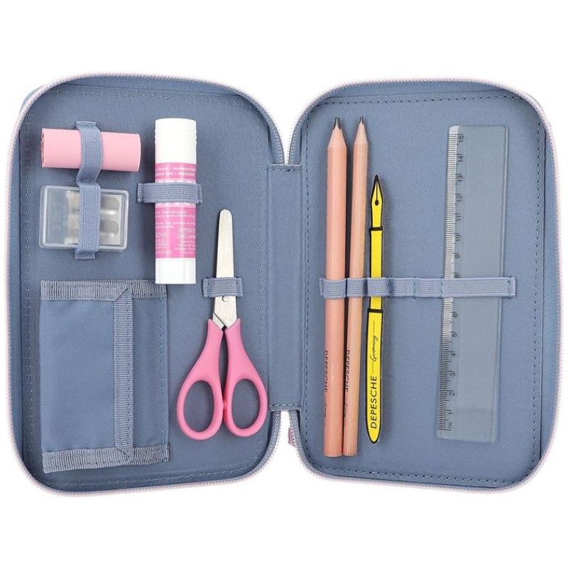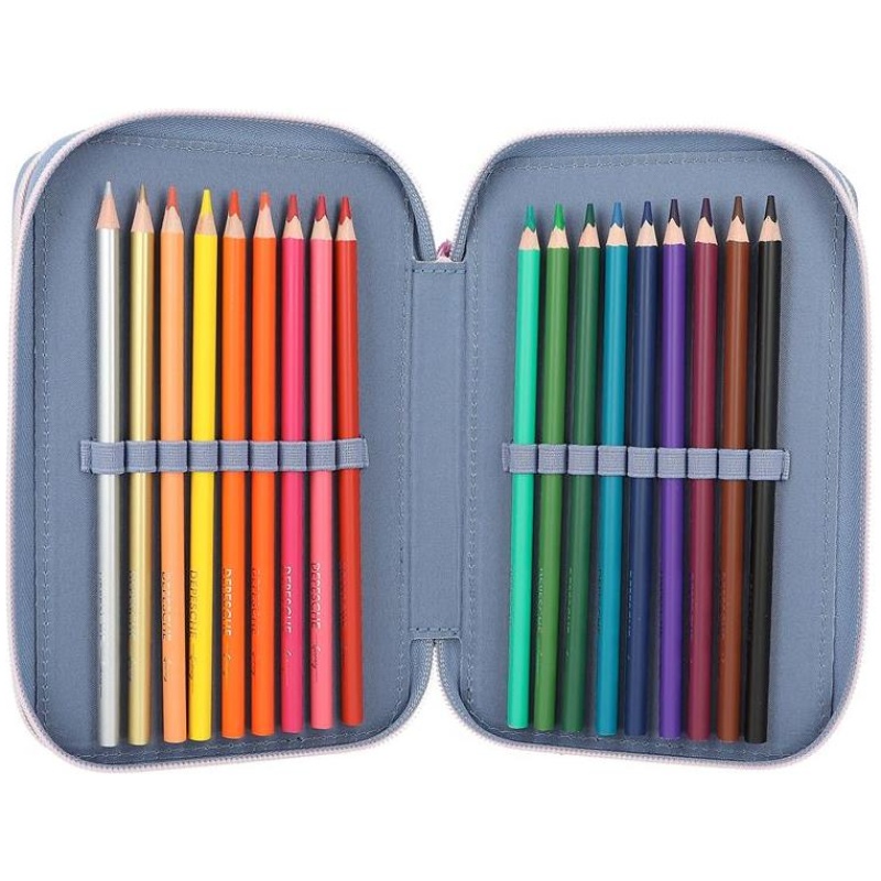 Ova pernica ima tri odvojena pretinca koji su potpuno ispunjeni sa 18 flomastera i olovaka za bojanje, 2 olovke, ravnalom, gumicom, šiljilom, škarama, štapićem za ljepilo i malim džepom na čičak. Sve što vam je potrebno za kreativno izražavanje nalazi se u ovoj pernici – više nije potrebno tražiti po raznim mjestima!