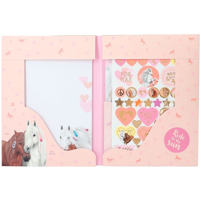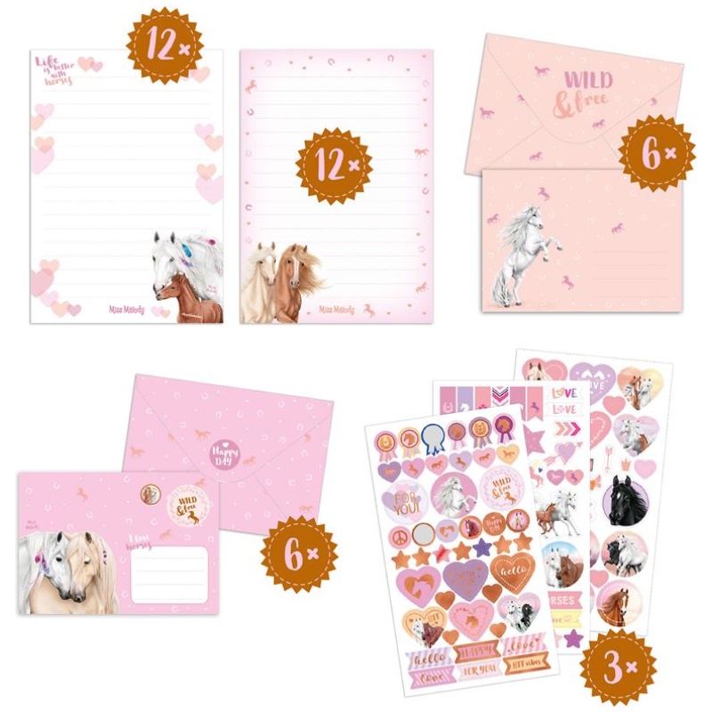 Ne čekajte više! Dodajte Gospođica Melodi Set sa pismima “Sundown” u košaricu i omogućite svojoj djevojčici da se izrazi na najkreativniji način. Neka ova nevjerojatna kombinacija boja, konja i pisama oživi njenu maštu i donese radost i sreću svaki put kada pošalje svoje posebne poruke.
