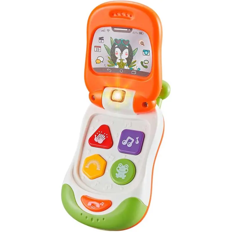 Naš Mobitel na preklop posebno je dizajniran da bude siguran i privlačan za bebe starije od 3 mjeseca. Izrađen od izdržljive i netoksične plastike, možete biti sigurni da je vaša beba u sigurnim rukama dok se igra s ovim telefonom.