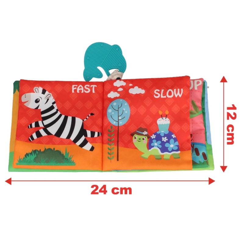 Svaka knjižica sadrži 12 šarenih stranica s opisima i ponašanjima životinja. Izrađene su od sigurnih materijala te imaju šuškave stranice koje potiču osjetila. U sredini svake knjižice nalazi se kuglica-pištalica, a gumena glodalica na špagici može služiti kao držač.