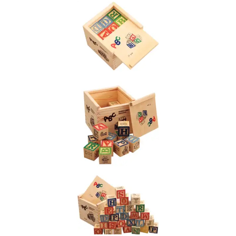 - Drvene edukativne kocke za učenje boja, slova i brojeva.