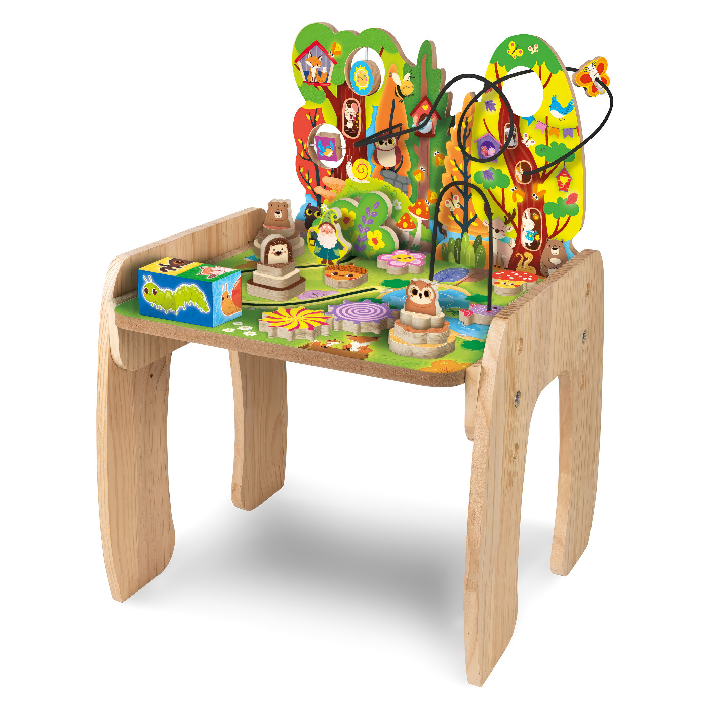 Ovaj šarmantni stol za aktivnosti stvoren je za male istraživače koji žele učiti kroz igru. Već od 12 mjeseci, djeca mogu uroniti u svijet zabavnih izazova, razvijajući pritom svoje motoričke i kognitivne vještine. Izrađen od kvalitetnog drva, ova igračka donosi toplinu prirodnih materijala i sigurnu, stabilnu podlogu za sate kreativne igre.