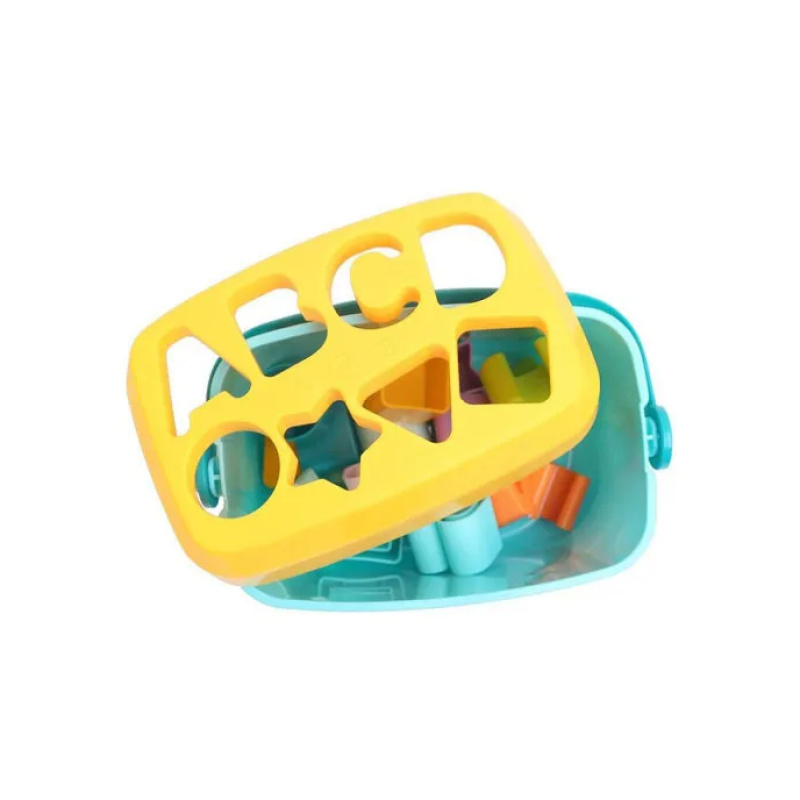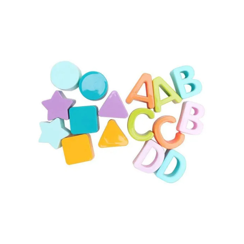 U setu se nalazi kantica s poklopcem i drškom, geometrijski i abecedni oblici. Vaše dijete će moći da ih sortira, uparuje i slaže u toranj, što će razvijati finu motoriku i percepciju. Ovi oblici imaju zaobljene rubove kako bi bili sigurni za igru.