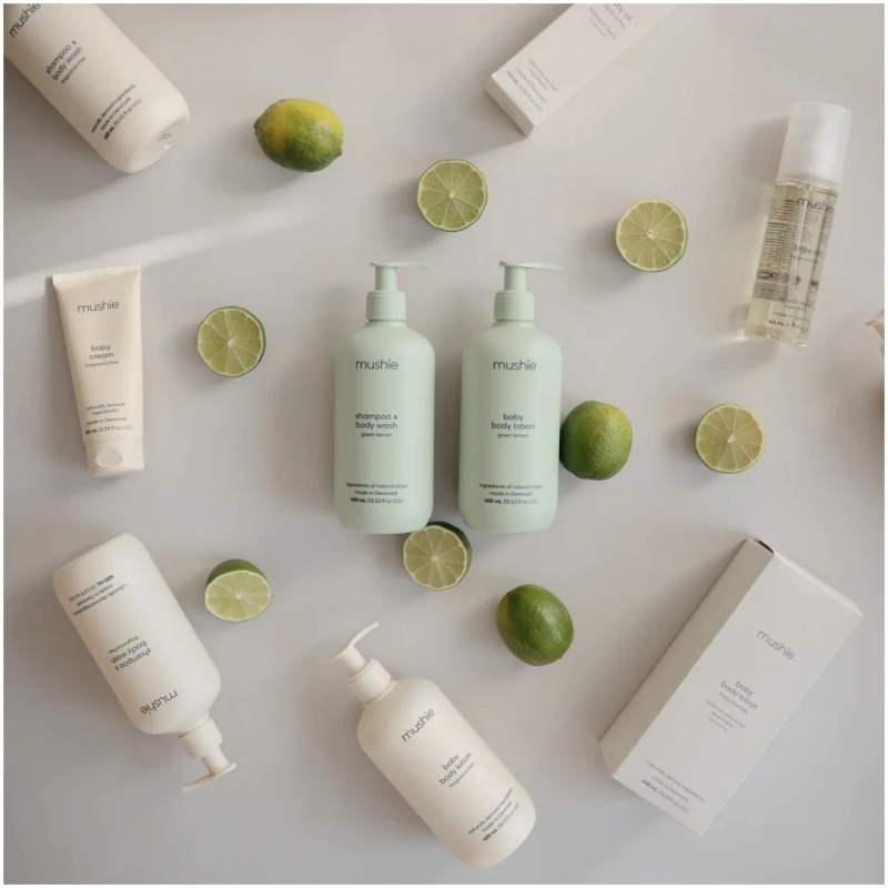 - Mushie Baby losion Green Lemon Cosmos – njega za suhu kožu.