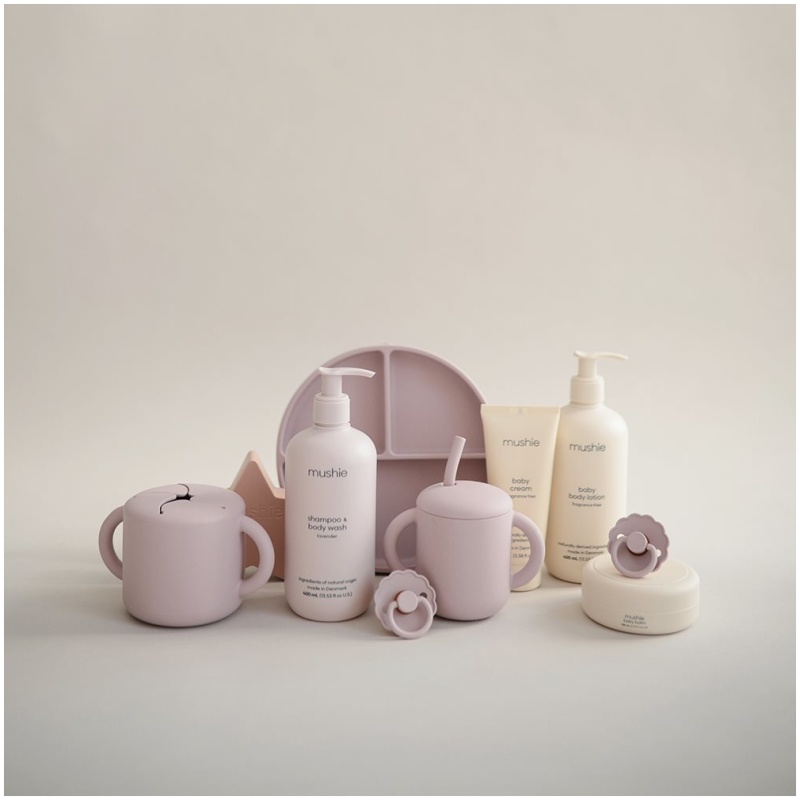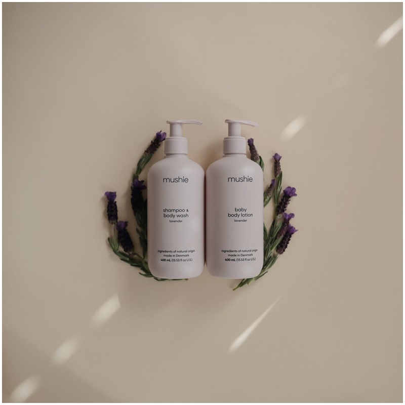 Mushie šampon i gel za tuširanje s nježnim mirisom lavande je jedinstveno razvijen proizvod za njegu osjetljive kože i vlasišta beba i djece. Nježna formula sprječava dehidraciju, omekšava i vlaži. Dodajte malu količinu gela u vodu za kupanje ili kosi i temeljito isperite vodom. Zbog svog prirodnog sustava proizvod je pogodan za svakodnevnu upotrebu od rođenja nadalje, 100% je veganski te s certifikatom protiv alergija. Dio sastojaka dolazi iz organske proizvodnje pa proizvod posjeduje Ecocert Greenlife certifikat prema COSMOS standardu.
