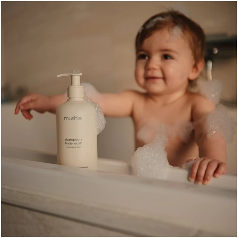 Uporaba: Dodajte manju količinu u vodu za kupku ili na kosu. Temeljito isperite s vodom. Upotrijebite s dječjim uljem Mushie® ili dječjim losionom Mushie® za još mekšu kožu.