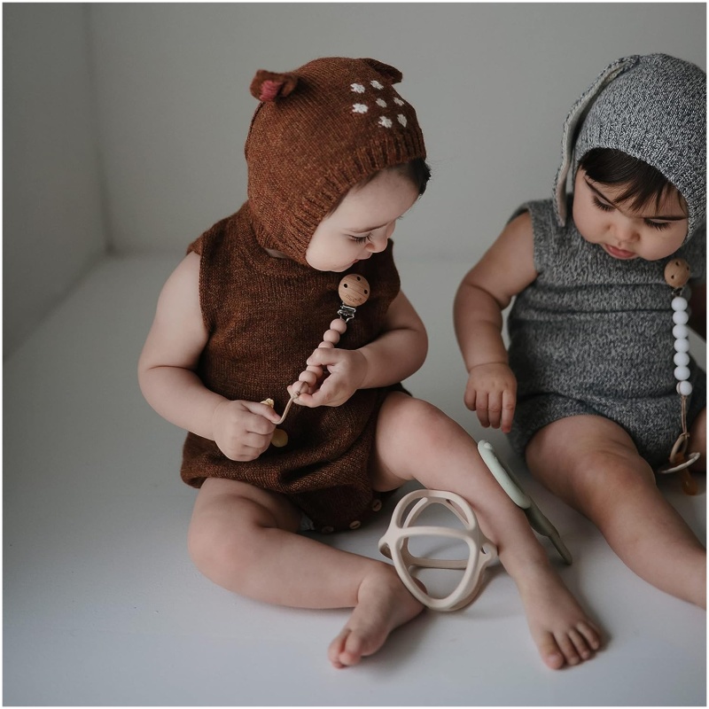 Razumijemo koliko je važno umiriti nadražene desni vaše bebe, zato vam nudimo našu liniju glodalica. Izrađene od 100% netoksičnog silikona namijenjenog za prehrambenu upotrebu, naše grickalice su sigurne za vašu bebu. Njihov geometrijski dizajn i sofisticirane boje čine ih modernim dodatkom u vašem domu.