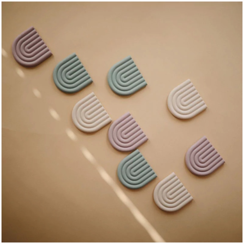 Pomozite smiriti nadražene desni svoje bebe s našom linijom glodalica u obliku duge. Izrađene su od 100% netoksičnog silikona prehrambene klase, što ih čini sigurnim za upotrebu vaše bebe. Njihov fantastičan dizajn i sofisticirane boje čine ih stilskim dodatkom vašeg doma.