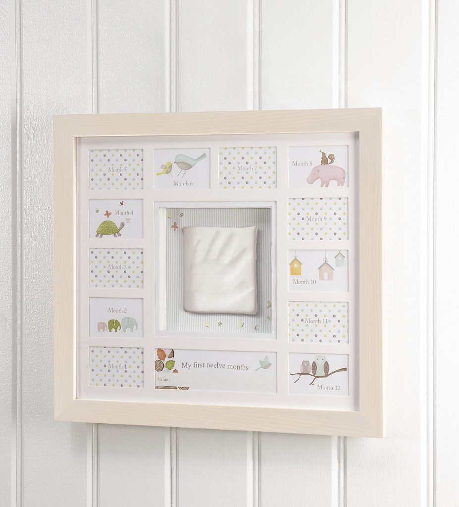 Očuvajte i pokažite one posebne trenutke iz života Vaše bebe. Ovaj jedinstveni okvir pruža Vam mogućnost umetanja dvanaest malih fotografije te mjesto za utisnuće otiska ručice ili stopala Vaše bebe kao i prozorčić u koji možete upisati ime i prezime Vaše bebe. Okvir je od drveta i lijepog je dizajna. Dvanaest prozorčića za umetanje fotografija Vašeg djeteta pružaju vidljivu i nezaboravnu uspomenu na prvih 12 mjeseci života. Prikladno i kao lijep poklon za novorođenče.