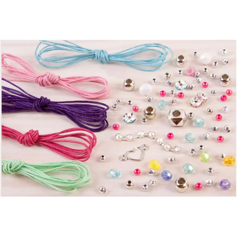 - Set za izradu narukvica s koncima, perlicama i detaljnim uputama.