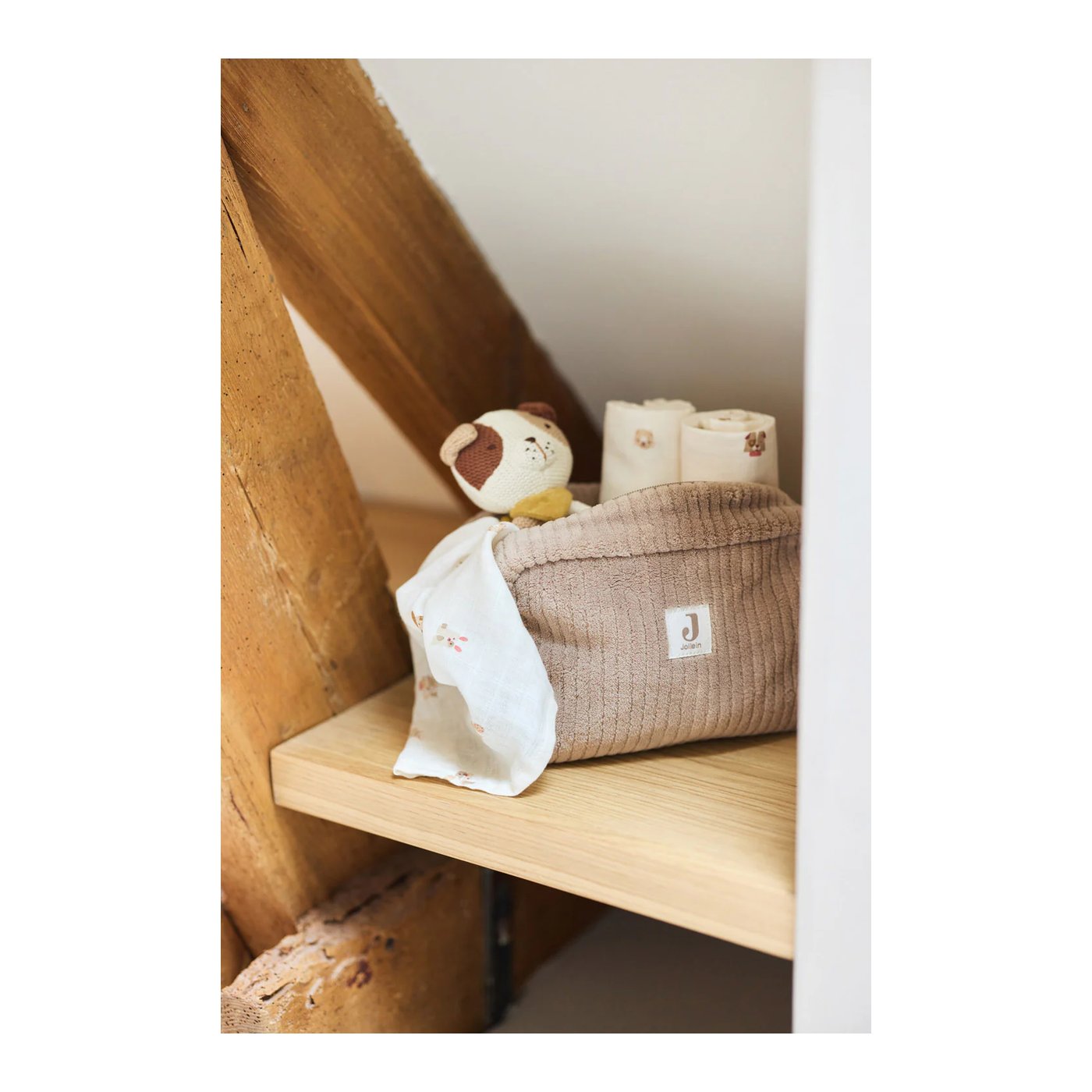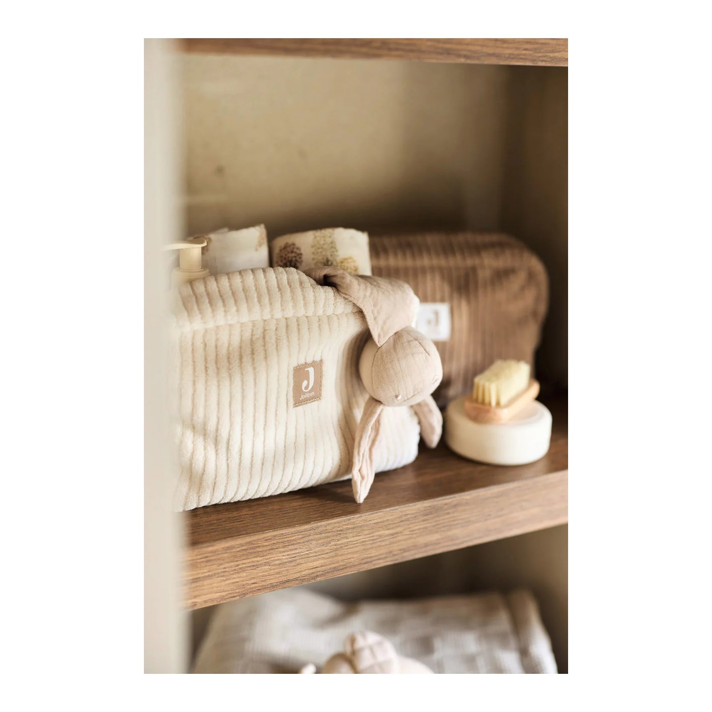 Tražite li savršen neseser koji će svojim dizajnom i funkcionalnošću doprinijeti vašoj kolekciji baby essentials? Jollein Neseser Cloudy Rib Milky Coffee je upravo ono što vam treba! Njegova prekrasna vanjština s mekanom, rebrastom teksturom te šarmantan unutarnji uzorak lišća odmah privlače poglede. Ovo nije samo običan neseser, već modni dodatak koji istovremeno odiše stilom i funkcionalnošću.
