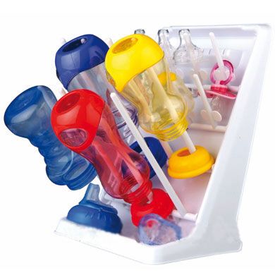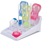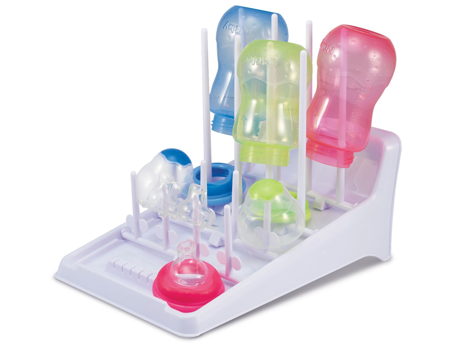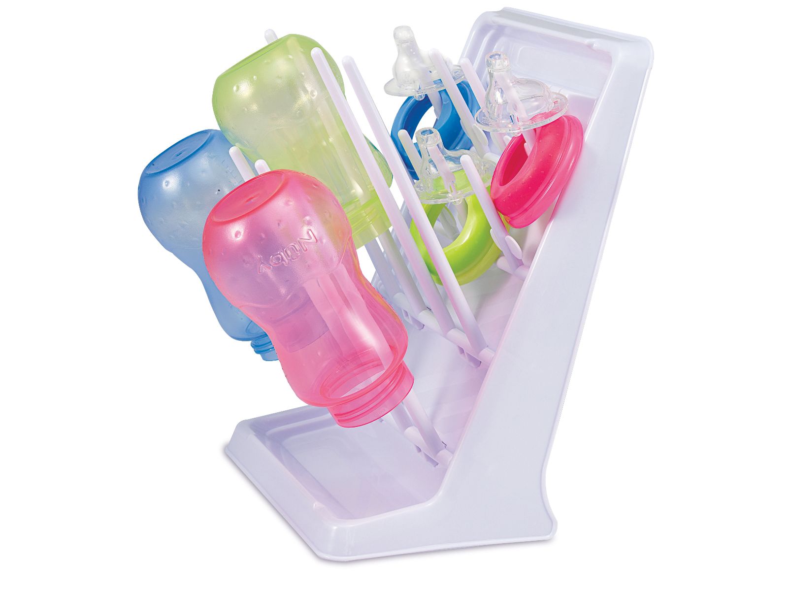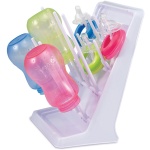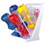 Praktični stalak za boce od proizvođača Nuby. Može se koristiti na dva načina, postavljen uspravno ili pak vodoravno. Služi za odlaganje bočica, čaša, sisača i duda nakon pranja.