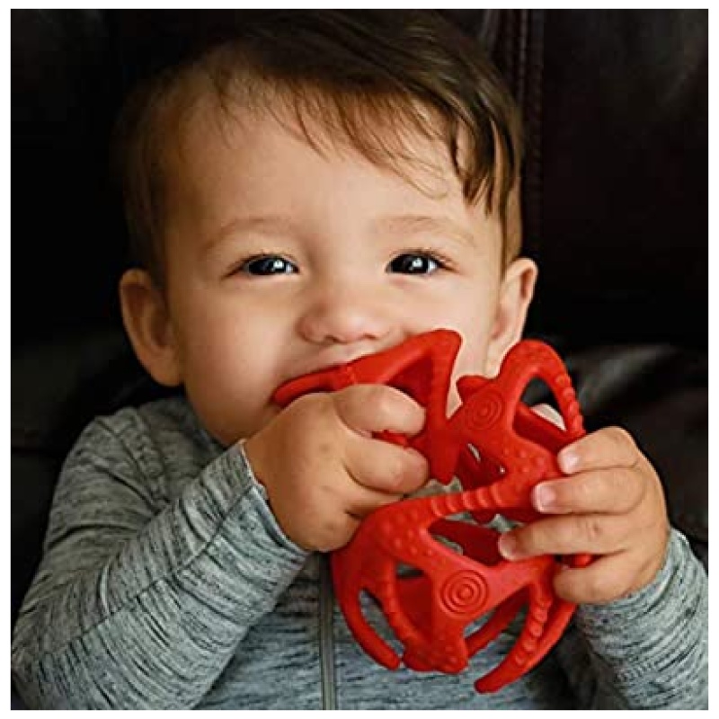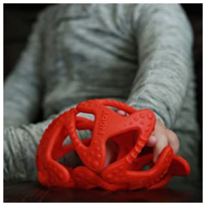 Kvalitetna silikonska glodalica Nuby u obliku lopte. Sva je savitljiva. Na površini se nalaze različite teksture za bolje glodanje i olakšanje nicanja prvih zubića. Materijali su mekani, sigurni za bebu i ne nadražuju sluznicu i kožu. Za bebu od 3+ mjeseci.