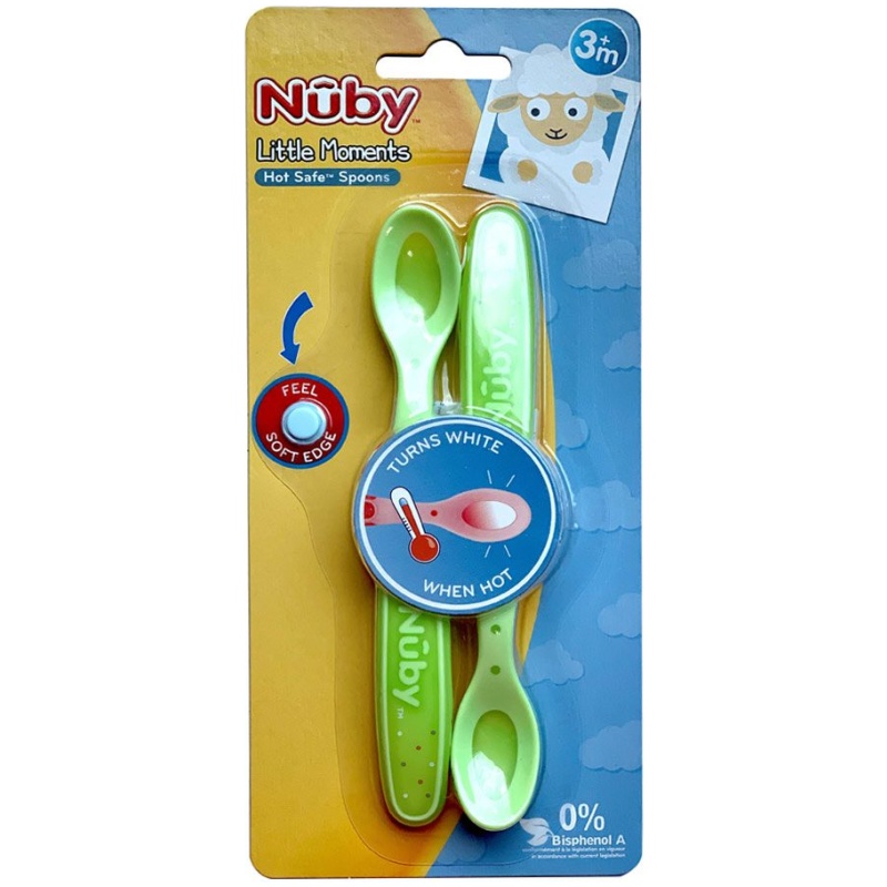 Jedinstveno dizajnirana žlica s dugom ručkom čini hranjenje lakšim i mamama i djeci. Mekani vrh čini hranjenje sigurnijim. Mekani vrh žlice štiti desni pri hranjenju  a žlica mijenja boju ukoliko je hrana prevruća. Žlica ima dno koje lako klizi preko bilo kakvog posuđa. Duga ručka čini lakše uzimanje hrane s dna visokih staklenki i dubokih zdjela.  Svi Nuby proizvodi su načinjeni od sigurnog, izdržljivog i netoksičnog materijala i odgovaraju svim sigurnosnim pravilima i standardima.