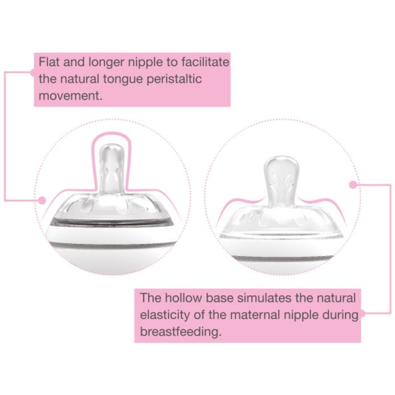 -Šuplja osnova simulira prirodnu elastičnost majčine bradavice tijekom dojenja.