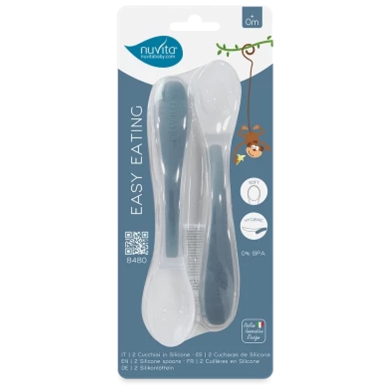 Neka vaše dijete uživa u obrocima s Nuvita Setom od 2 silikonske žlica Powder Blue.
