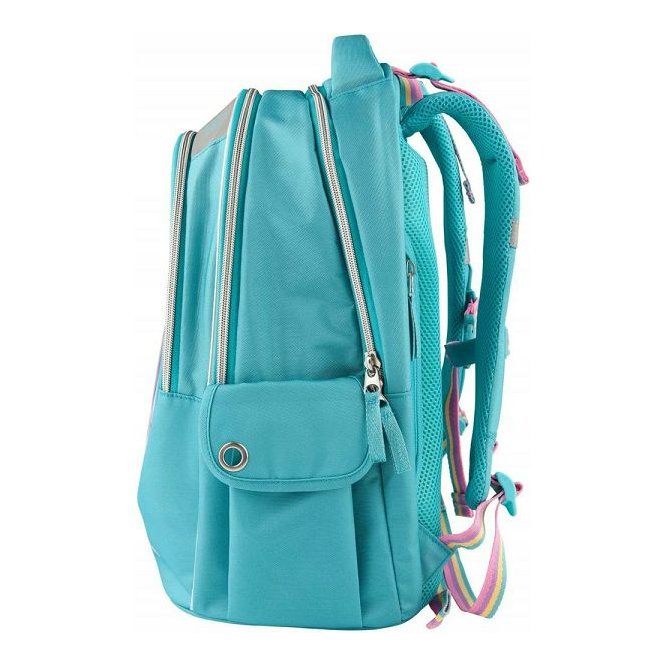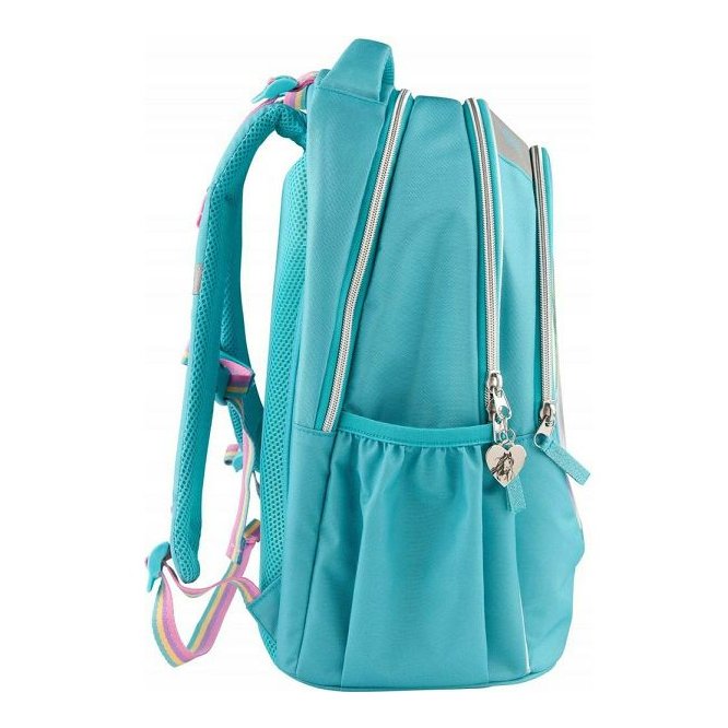 Što Miss Melody torbu čini posebnom? Osim što se ističe svojim prekrasnim dizajnom inspiriranim šarenom paletom duginih boja, izrađena je od izdržljivog poliestera što je čini otpornom na svakodnevno habanje. Veličine približno 33 x 43 x 23 cm, ova torba nudi dovoljno prostora s glavnom komorom, srednjom komorom, prednjim džepom i dva bočna džepa – savršena za organizaciju svih školskih potrepština.