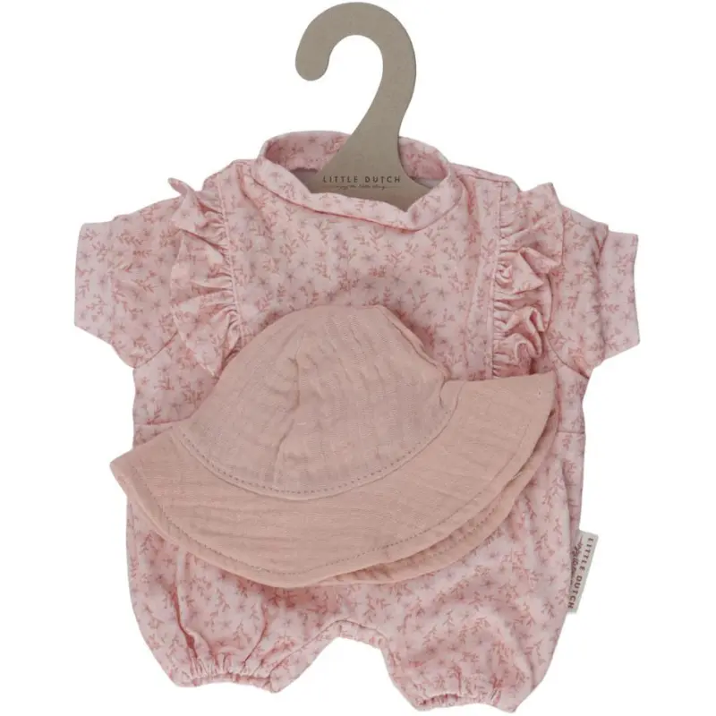 Ovaj slatki odjevni set za lutku u Pink Floral uzorku je savršen za svaku prigodu. Tvoja omiljena lutka će izgledati očaravajuće u ovom setu. Uživaj u oblačenju svoje lutke i pripremi je za jedan dan pun avantura i igre. Ovaj set uključuje prekrasni kratki kombinezon u Pink Floral uzorku, ukrašen slatkim malim cvjetićima. Da bi taj šarmantan izgled bio potpun, tu je i odgovarajuća roza sunčana kapa.