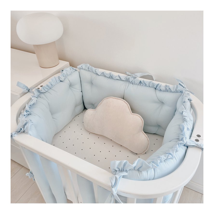 Što Dada & Rocco Dreamy Ogradica Plava čini tako posebnom? Svaki jastuk je precizno izrađen s dimenzijama od 60 cm širine i 30 cm visine, što osigurava savršenstvo u svim uvjetima. Punjenje od antialergijske poliesterske vate pruža dodatnu sigurnost, što je od iznimne važnosti za osjetljivu dječju kožu.