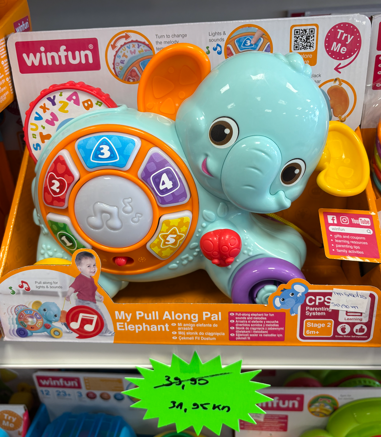 Outlet: Glazbena igračka Winfun My Pull Along Pal slonić