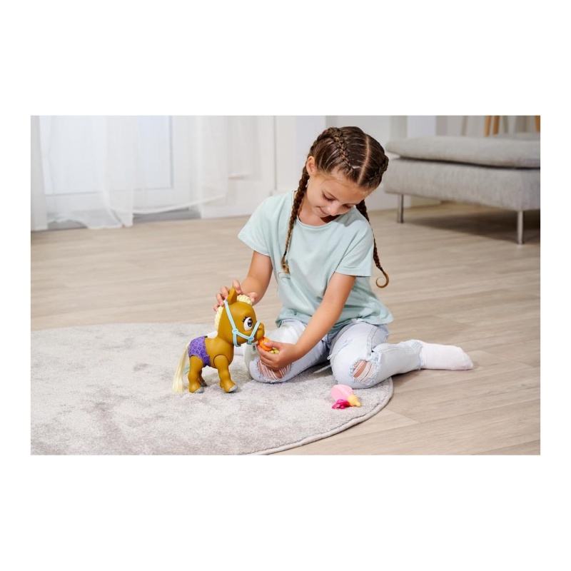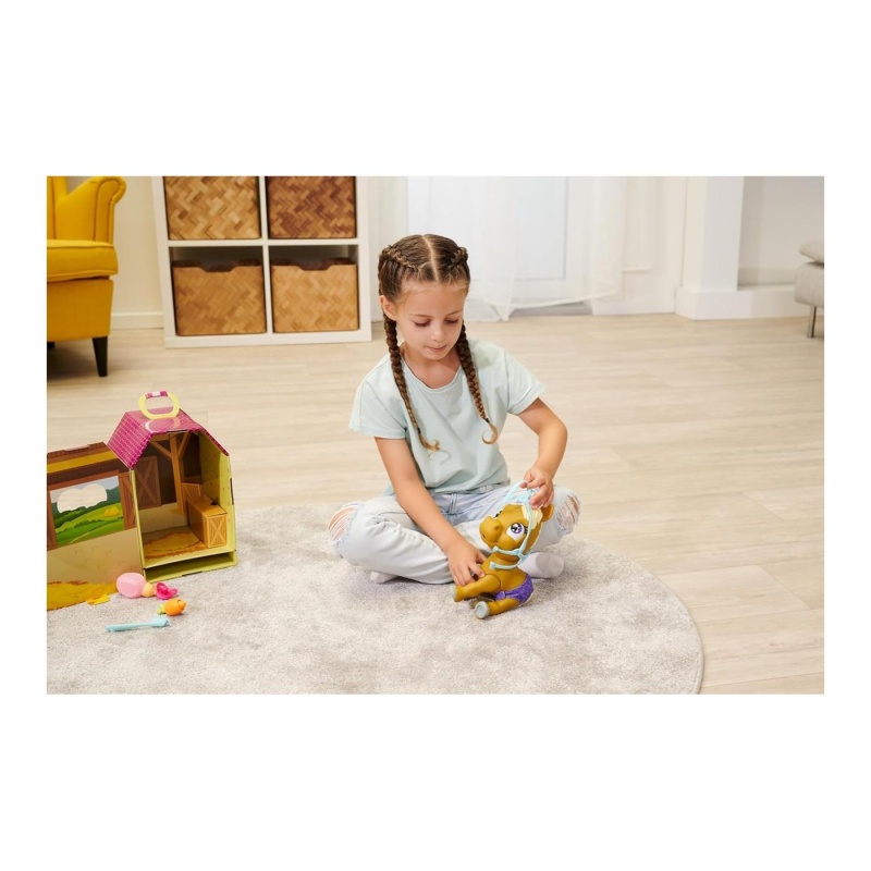Jedno od najposebnijih obilježja ovog ponija je njegova pelena koja mijenja boju kad se “zamokri” – baš kao pravi ljubimac! Uz to, dolazi s dodacima koji igru čine još zanimljivijom. Djeca mogu ponija maziti, hraniti i mijenjati mu pelenu, osjećajući se kao pravi mali skrbnici.