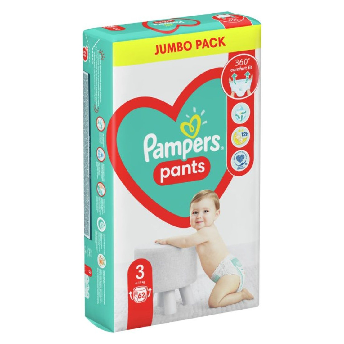 Pelene-gaćice iz Pampers asortimana pažljivo su osmišljene za djecu težine od 6 do 11 kg, savršene za one koji su stalno u pokretu. Jednostavno navlačenje i skidanje čini svaku promjenu bržom i ugodnijom, a rastezljivi pojas prateći svaki pokret osigurava da pelena uvijek ostane na svom mjestu. Roditelji mogu biti mirni jer je ovdje naglasak na praktičnosti s osjećajem udobnosti nalik donjem rublju, što svaku promjenu čini manje stresnom i za dijete i za roditelja.