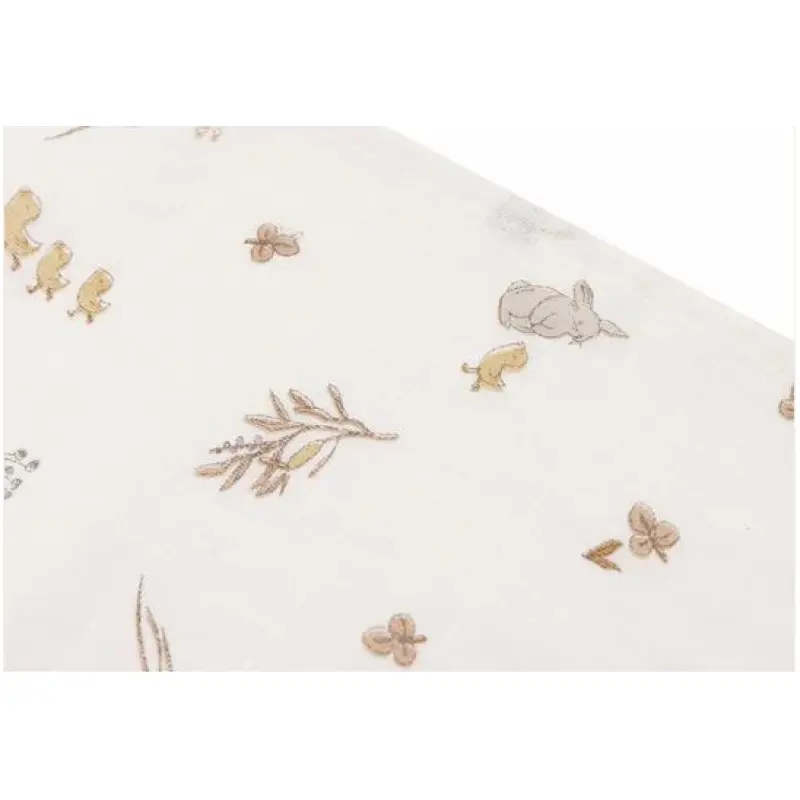 Naš print muslin pelene Riverside sadrži simpatične motive patki, zečeva i biljaka uz rijeku. Ovaj uzorak će učiniti svaku pelenu posebnom i ugodnom za vaše dijete.