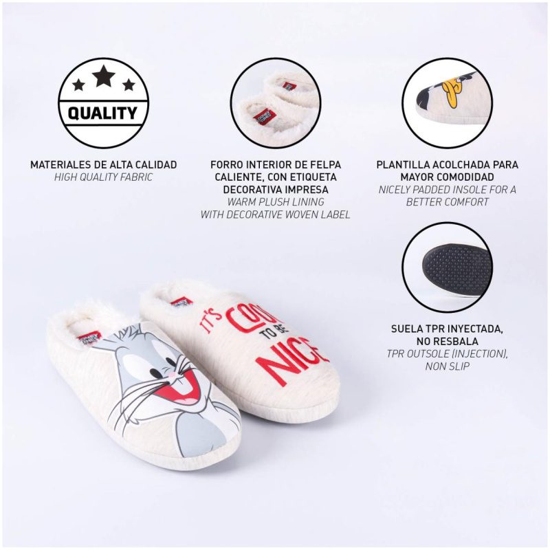 Kvalitetne papuče za djecu Looney Tunes. Tople, udobne i mekane. Izrađene su od sigurnih netoksičnih materijala. Poliester, prozračne. Dostupne su veličine 36/37, 38/39 i 40/41 broj.