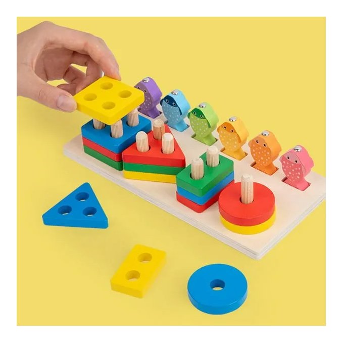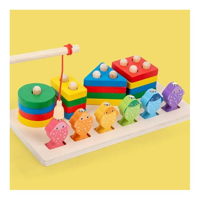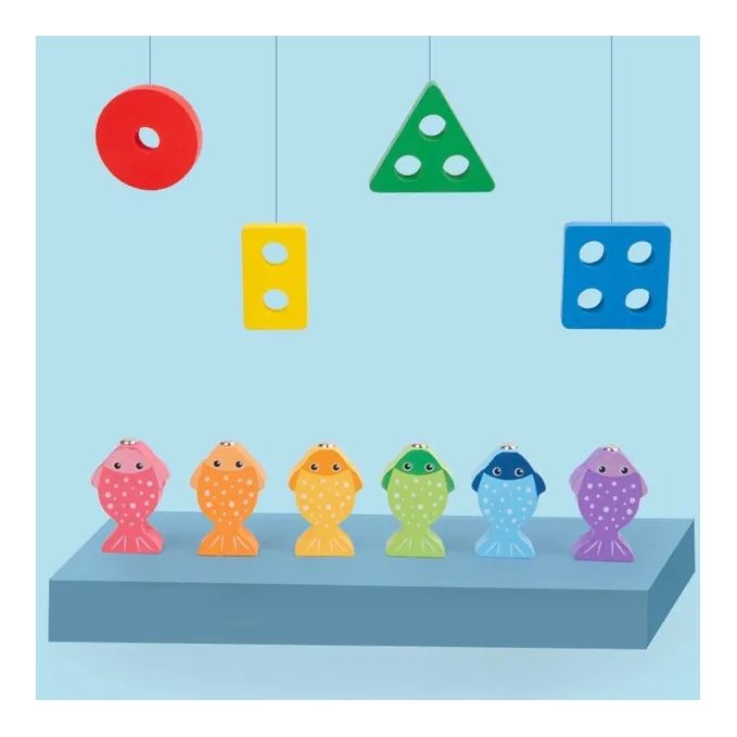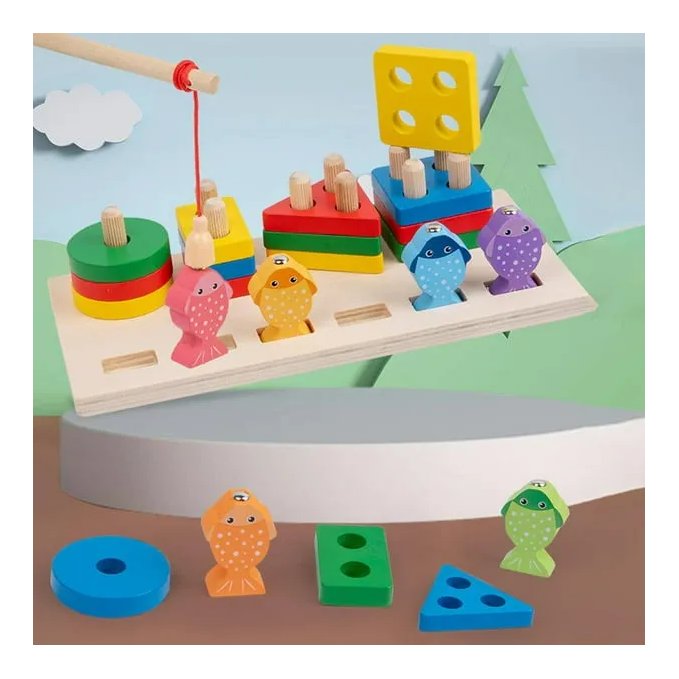 Set Pecanje Ribica nudi višestruke aktivnosti koje stimuliraju različite aspekte dječjeg razvoja. S drvenim oblikačem za oblike, vaše dijete će brzo naučiti prepoznati i razvrstati oblike i boje. Uključeni štap za pecanje i šest magnetskih ribica pružaju priliku za razvoj koordinacije ruka-oko, dok rukovanje štapom i postavljanje oblika pomaže u razvoju finih motoričkih vještina. Napravljen od prirodnog drva i obojen netoksičnim bojama, naš set je siguran i izdržljiv, pružajući bezbrižno vrijeme igre.