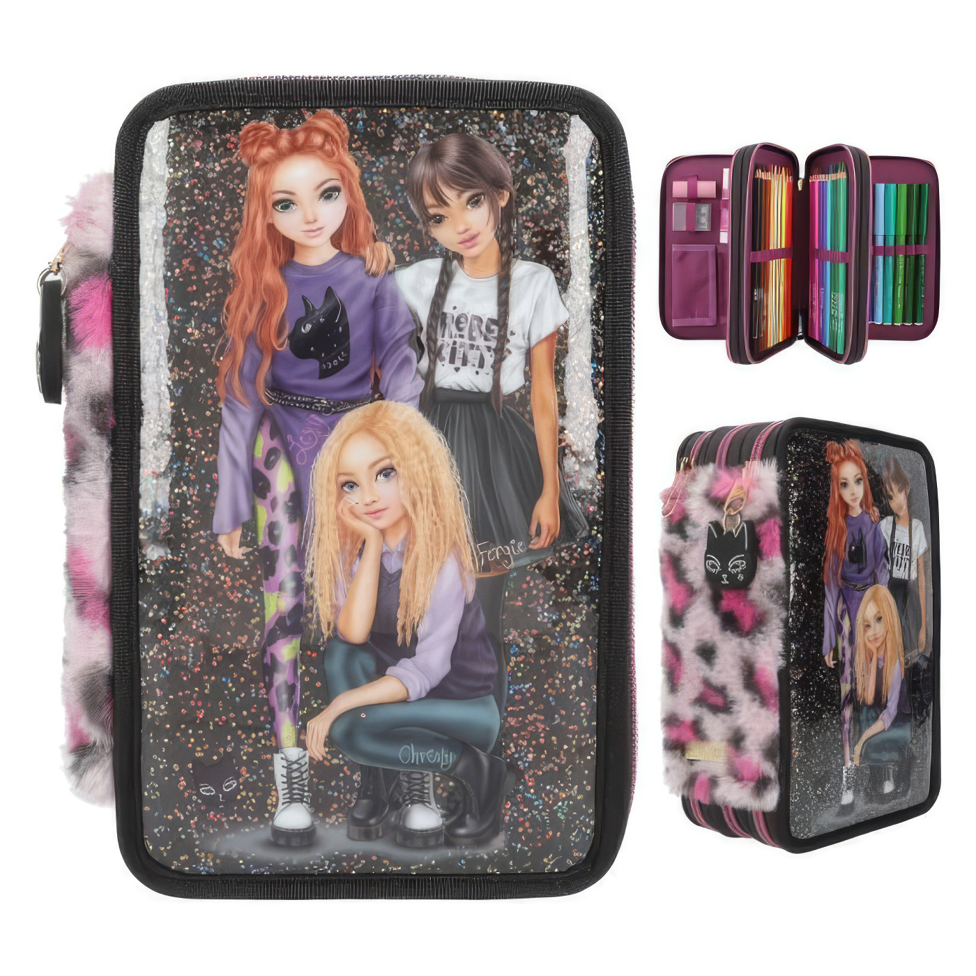Ako tražite pernicu koja će oduševiti svakog školarca ili kreativca, ova trodijelna pernica s motivom Rebel Kitty pravi je izbor. Moderni dizajn prepun šljokica, upečatljivi ljubičasti patentni zatvarači i mekani, lažni leopard krzneni detalji čine ovaj proizvod posebnim na svakoj školskoj klupi. Uz to, tu je i slatki privjesak u obliku mačke koji daje dodatnu dozu osobnosti.
