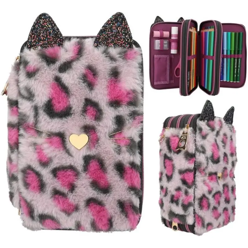 Ova pahuljasta pernica iz nove dizajnerske linije Top Model je više od obične pernice – ona je izvor inspiracije i izražavanja kreativnosti! Sa svojim plišanim lavljim umjetnim krznom u crnoj i ljubičastoj boji, ova pernica će privući pažnju svakog osnovnoškolca.