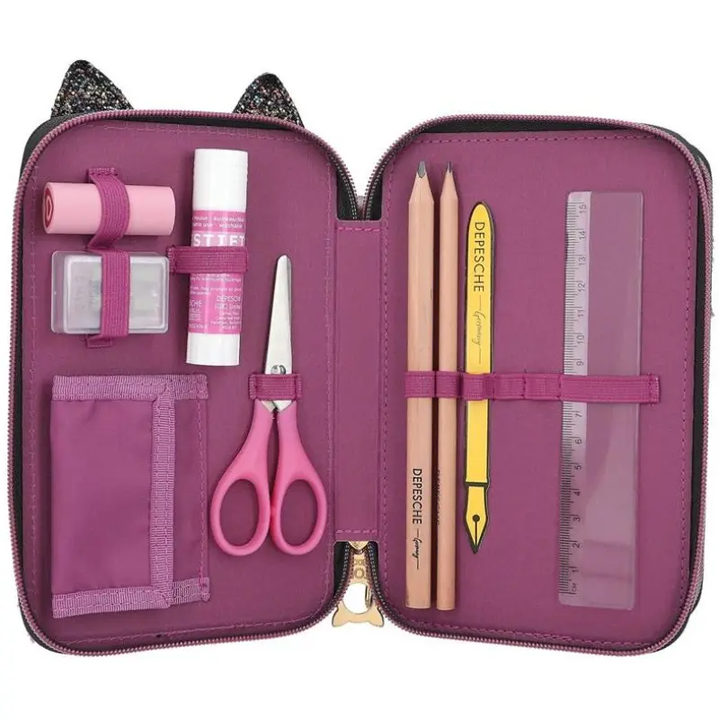 Ali to nije sve! Ova pernica je obuhvatno opremljena sa tri odvojena odjeljka, svaki potpuno ispunjen sa 18 boja i flomastera, 2 olovke, gumicom, šiljilom, ravnalom, škarama, ljepljivim štapićem i malom torbicom na čičak. Bez obzira na to što vam treba, ova pernica će zadovoljiti sve vaše potrebe za pisanjem i crtanje.
