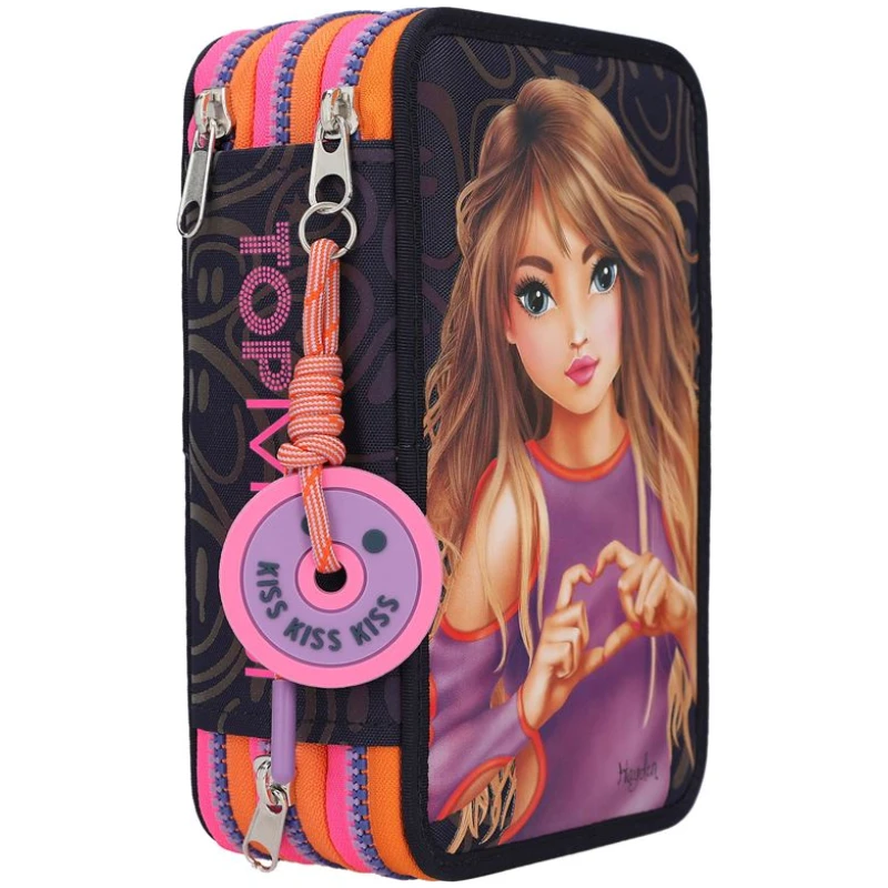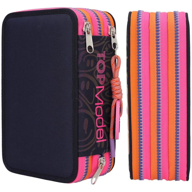 Blistavo lijepa pernica iz TOP Modela, tamnoplave boje, osvaja srca svojim jedinstvenim dizajnom i sjajnim detaljima. Ova trostruka pernica je pravi san svakog ljubitelja mode i kreativnosti.