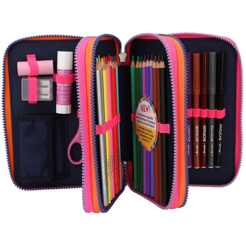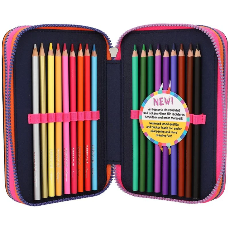 Ali ova pernica nije samo izgled. Tri odvojena pretinca pružaju vam obilje prostora za organizaciju vaših školskih potrepština. Pernica dolazi potpuno ispunjena s 18 boja i 18 flomastera, 2 olovke, ravnalom, gumicom, šiljilom, škarama i štapićem ljepila. Sve što vam je potrebno za kreativno izražavanje i savladavanje svakodnevnih školskih izazova.