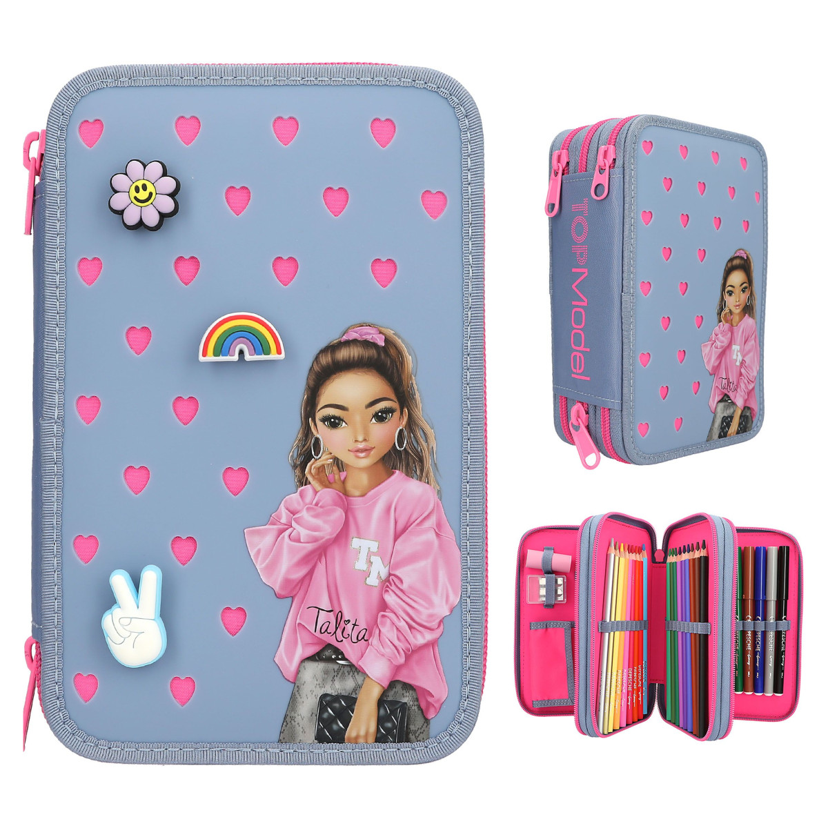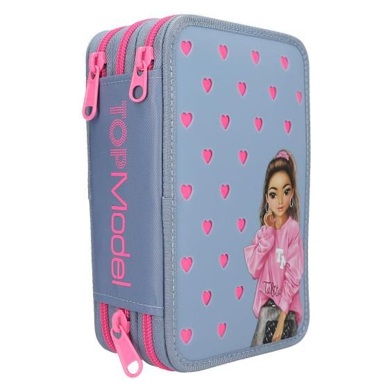 Ako tražite savršenu pernicu koja će oduševiti svako dijete i olakšati svakodnevne školske zadatke, ova dimnoplava Top Model pernica je izbor koji donosi osmijeh i red! Tri odvojena, potpuno napunjena pretinca nude puno prostora za svaki komad pribora – od bojica i flomastera do škara i ljepila –, sve na dohvat ruke i uvijek uredno posloženo.
