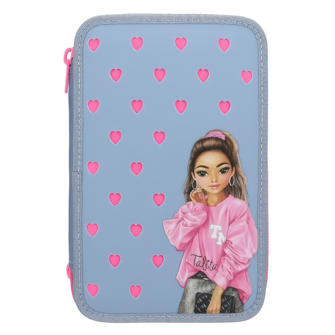 Na naslovnici pernice nalazi se slatki ilustrirani motiv modela, ukrašen ružičastim izrezima u obliku srca, u koje se mogu pričvrstiti originalne pribadače (cvijet, duga i ruka mira su već uključene!). Moderan Depesche TOPModel dizajn pretvara ovu pernicu u pravi modni dodatak, dok izdržljivi materijali garantiraju dugotrajnu kvalitetu. Ova pernica nije samo praktična – ona djeci omogućuje da izraze svoju osobnost i uživaju u svakom školskom danu.