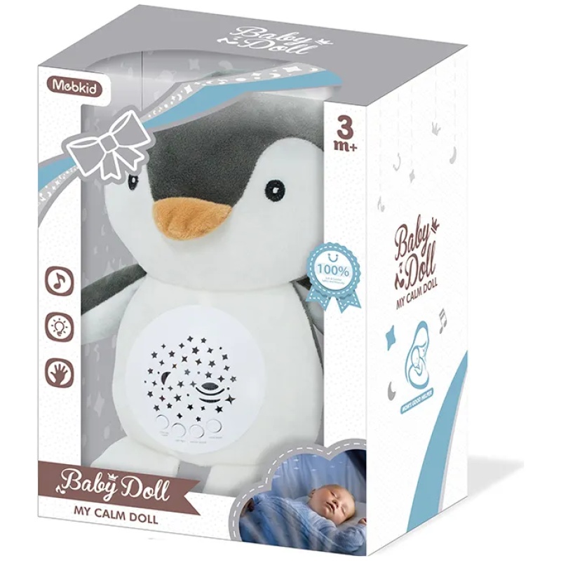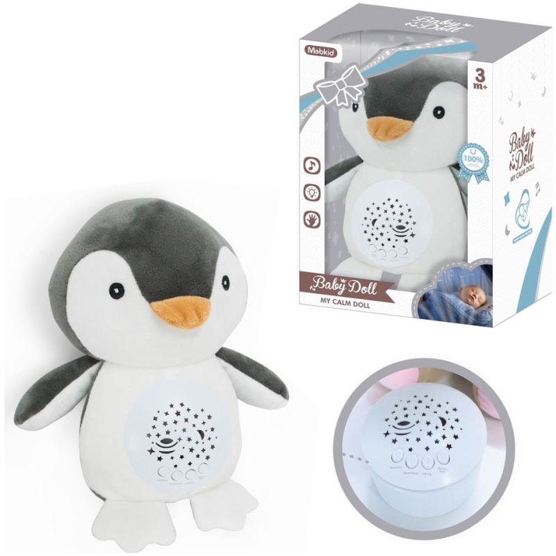 Upoznajte My Calm Doll Pingvina s Projektorom i glazbom i unesite svoju bebu u čarobni svijet snova! Ova slatka i draga igračka projicira čarobne zvijezde i mjesečeve scene na tamne stropove ili zidove, stvarajući mirno i opuštajuće okruženje za spavanje. Neka vaše dijete utone u san s laganom i opuštajućom glazbom koju proizvodi ova igračka, a možete birati između 10 različitih zvukova.