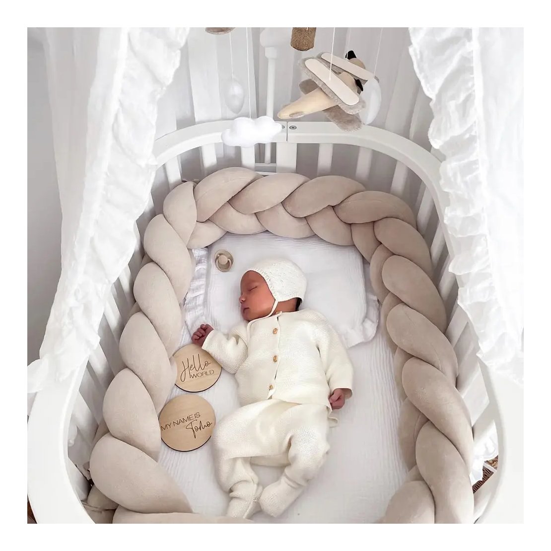 Zamislite kako će soba vašeg mališana zasjati novim sjajem uz ovu predivnu pletenicu. Njena neutralna bež boja savršeno se uklapa u svaki stil uređenja, dok njena mekana struktura osigurava da je svaka noć mirna i ugodna. Pružite svom djetetu najbolji početak uz proizvod proizveden s ljubavlju i pažnjom u Hrvatskoj, EU.