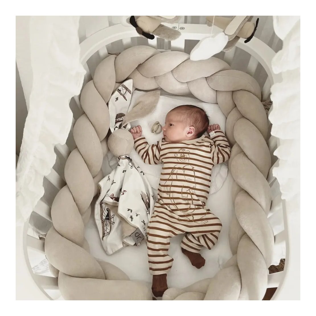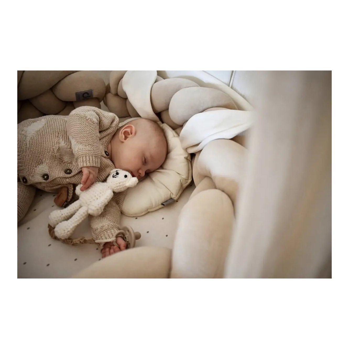 Izrađena od mekane velur tkanine i punjena antialergijskim silikonskim kuglicama, ova pletenica nudi luksuzan osjećaj na dodir i iznimnu udobnost. Materijali su pažljivo odabrani i nose prestižni Oeko-TEX® Standard 100 certifikat, što znači da su sigurni za vašu bebu i ne sadrže štetne tvari. Ne samo da će unijeti dozu elegancije u svaku sobu, već će i pružiti miran i siguran san vašem djetetu.