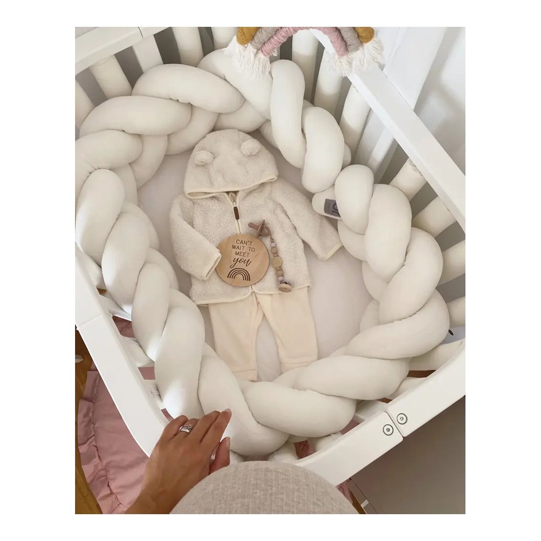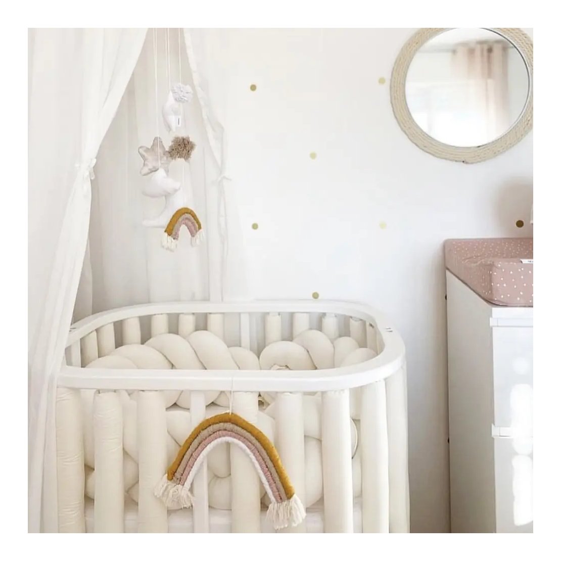 Zamislite sobicu vašeg mališana u kojoj se funkcionalnost i stil savršeno isprepliću. Naša pletenica ne samo da osigurava sigurnost vašeg djeteta tijekom spavanja, već i dodaje sofisticiranost i toplinu prostoru. S lakoćom se može pričvrstiti uz pomoć dodatnih vezica, osiguravajući stabilnost na krevetićima različitih veličina, uključujući i ovalne oblike.