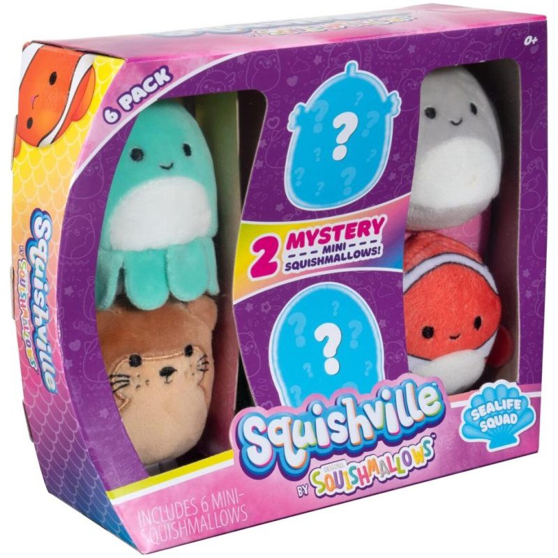 Squishmallows su najnoviji hit u svijetu igračaka. Ova kolekcija morskih stvorenja iz serije Squishville sadrži šest plišanih igračaka visokih pet centimetara. Svaki lik ima svoju osobnost i stil, poput morskog konjića, morskog psa, kornjače, raka i drugih.